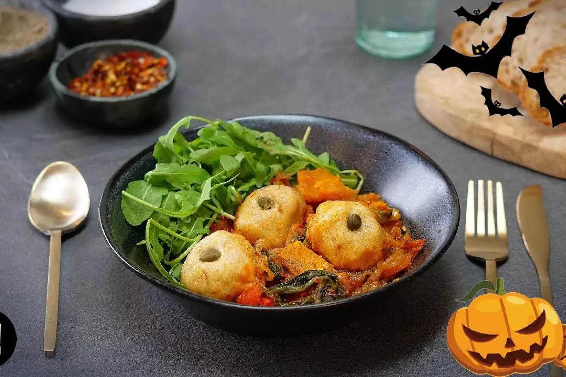 Halloween is creeping ever closer. Do you do anything to celebrate? If so, we have some super spooooooky recipes that may help with the festivities This delicious pumpkin stew is one of them! It's filling, warming and super healthy - as well as full of seasonal ingredients. We topped our hearty pumpkin stew with some gorgeously grotesque eyeball dumplings! (Simple yet effective' is the motto for this one) Regardless of whether you wanna spook your family, or just eat a delicious autumnal meal, this recipe is well worth a try!